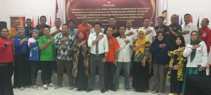 Total 832 Bacaleg DPRD Provinsi Sulteng yang dinyatakan BMS tersebut terungkap pada Penyerahan Berita Acara Hasil Verifikasi Administrasi yang dilaksanakan oleh KPU Provinsi Sulteng di aula KPU Sulteng, Sabtu (24/6/2023).