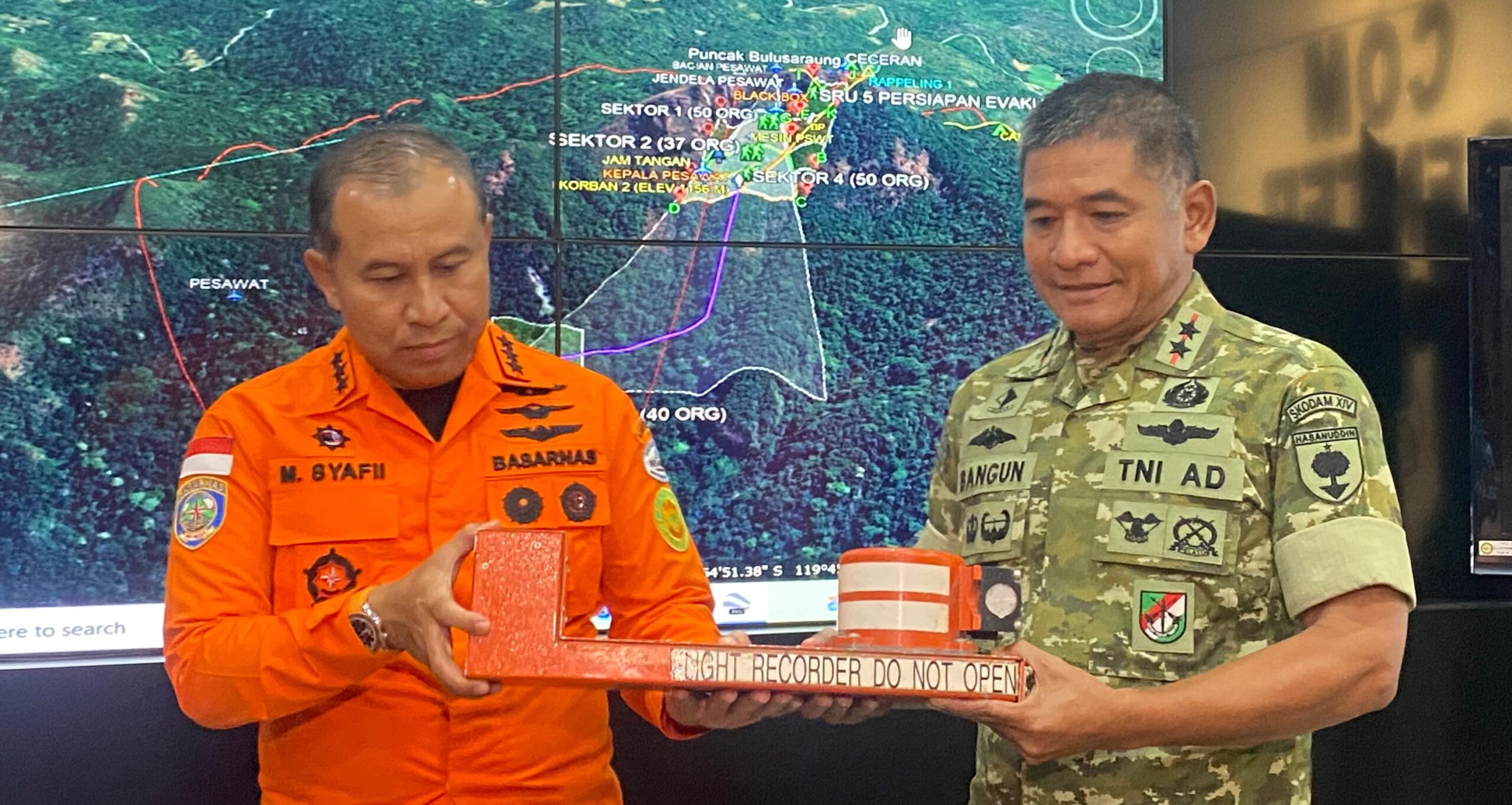 Dalam kesempatan tersebut, Mohammad Syafii menyampaikan apresiasi dan ucapan terima kasih kepada seluruh tim SAR gabungan yang bertugas di lapangan dan berhasil menemukan black box di tengah medan ekstrem serta kondisi cuaca yang menantang.