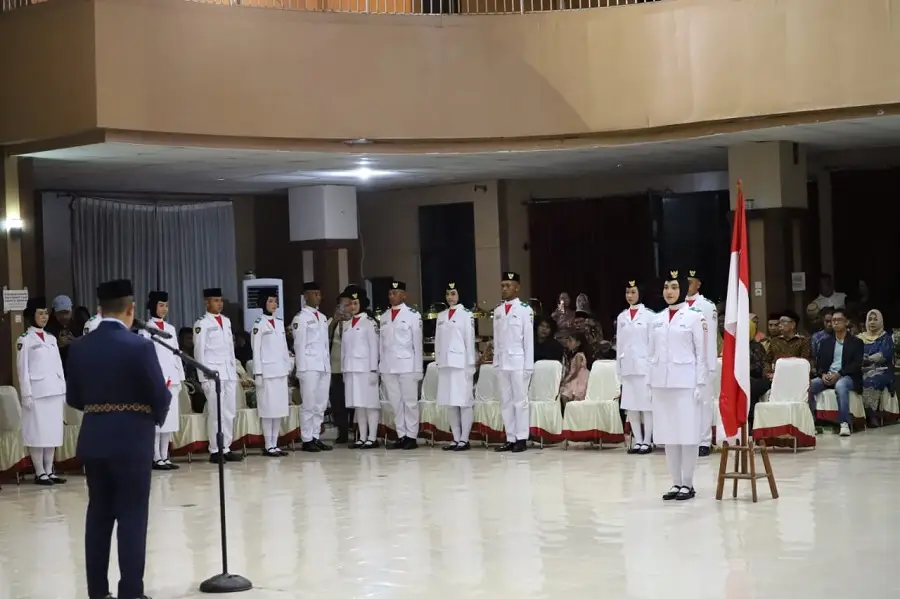 Momen ini dihadiri para kepala Organisasi Perangkat Daerah (OPD), unsur Forkopimda, insan pers, dan orang tua anggota Paskibraka. Suasana haru menyelimuti ruangan saat prosesi ikrar dan penghormatan kepada Sang Saka Merah Putih diiringi lantunan lagu “Padamu Negeri”.