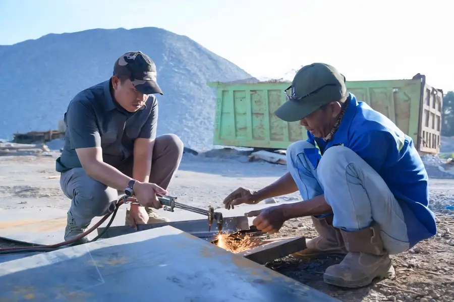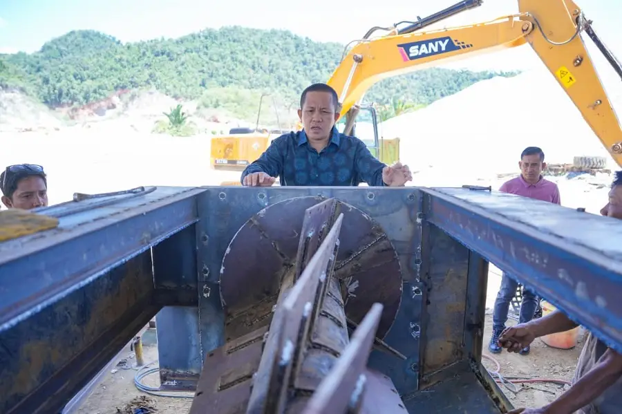 Keseriusan itu ditandai dengan kehadiran langsung Bupati pada proses perakitan mesin di kawasan PT Qarim Group Investama, Kecamatan Moramo Utara, Kabupaten Konawe Selatan, Kamis (11/9/2025). Peristiwa ini tidak sekadar kunjungan seremonial, melainkan bentuk keterlibatan nyata, di mana kepala daerah bahkan turun tangan menggunakan peralatan teknis, mengelas, dan memotong besi untuk menyempurnakan konstruksi mesin.
