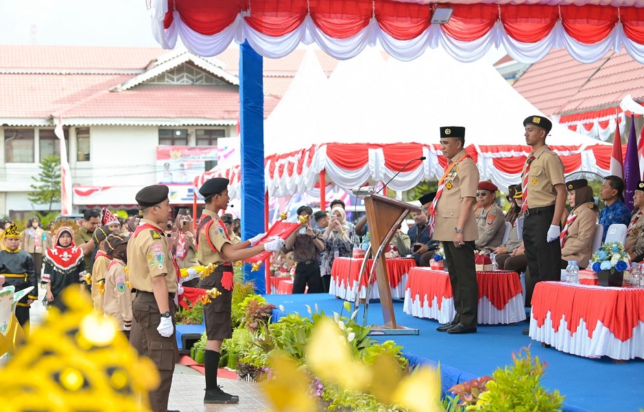 Upacara dihadiri Ketua Kwartir Daerah Gerakan Pramuka Sulteng Dr. Vera Rompas Mastura, S.Sos, M.Si, Ketua TP-PKK Ir. Hj. Sry Nirwanti Bahasoan, Forkopimda Sulteng, perangkat daerah dan mitra kerja. (red/teraskabar)