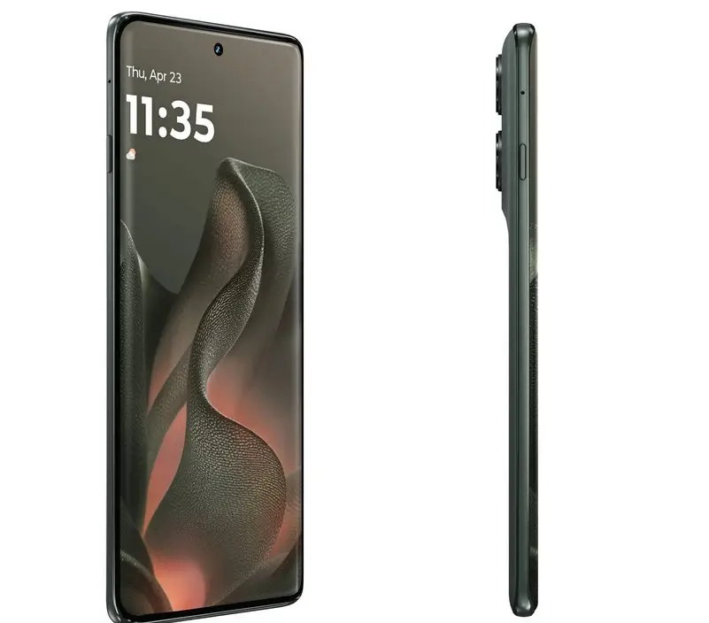 Bagian belakang ponsel menunjukkan perubahan besar. Edge 2025 akan memiliki tiga kamera belakang, bukan dua. Ini menghasilkan modul kamera yang lebih besar dan lampu kilat LED yang didesain ulang. Ponsel ini juga memiliki bagian belakang kulit imitasi dan hadir dalam warna hijau bergaya Pantone. Tidak jelas apakah lebih banyak warna akan tersedia.