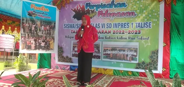 Begitupula saat Kepala SD Inpres 1 Talise, Dra. Rosida, M.Pd tampil menyampaikan sambutannya, berkali-kali sosok pendidik yang jadi panutan di sekolahnya ini menitikkan air mata. Rosida terlihat beberapa kali mengusap matanya dengan tissue.